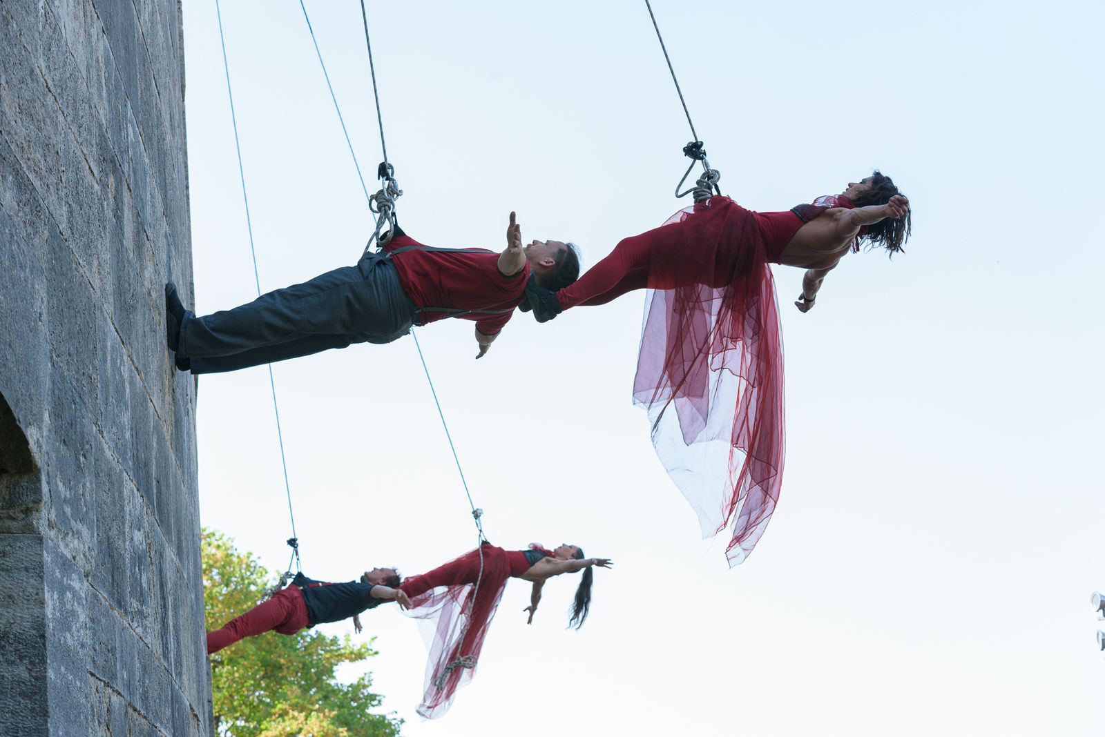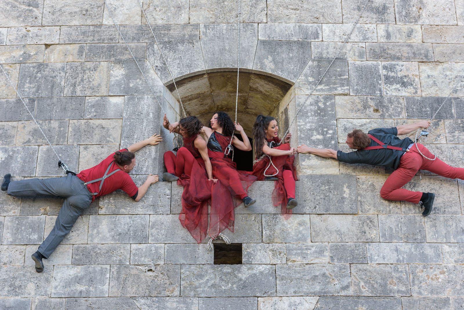 With or without live music the show has to be adapted to the location, a previous check of the building, performing site and planning of the rigging is inevitable, but it can be performed on indoor and outdoor walls or columns. This does not only ensure safety but lends a unique experience to each occasion.