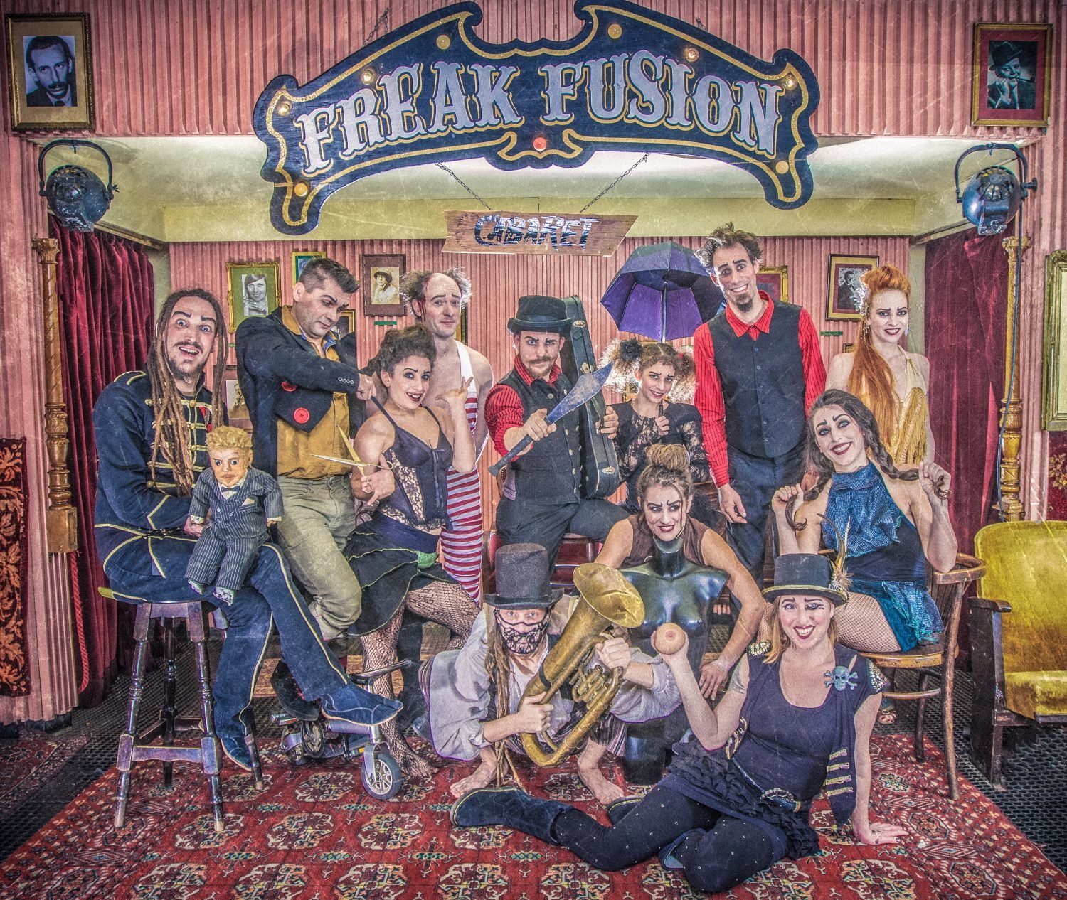 Freak Fusion Cabaret brings to you the mystical world of last-century travelling circuses, flavoured with some wonderfully dark humour. The spectacular juggling, acrobatics, aerial and burlesque acts are performed by the (s)cream of the Hungarian underground circus scene.