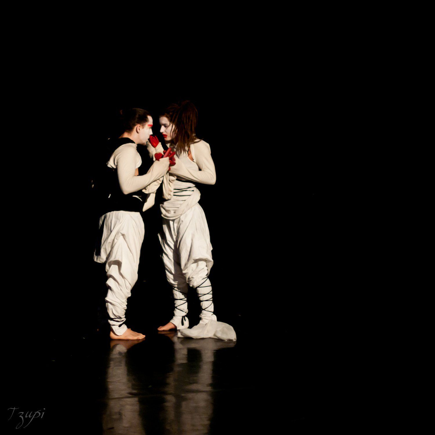 The performance was created for Mini-a-Túrák performance series hosted by Trafó House of Contemporary Arts. The theme was defined by Goya’s Caprichos series. Partnerpoi and acrobatics are imbedded into contemporary dance in this act. The peculiar dualistic nature of the costumes makes the optics of the show really unique.