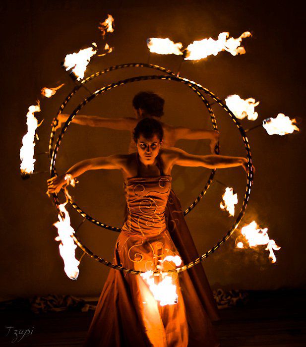 Many from the team had been taking part in Linda Farkas’s, the multi-faceted artist’s fire theatre as co-creators. Linda Farkas’s set- and visual design work, original expressivity and extraordinary technical expertise in manipulation is of great impact to the work and evolution of Firebirds.