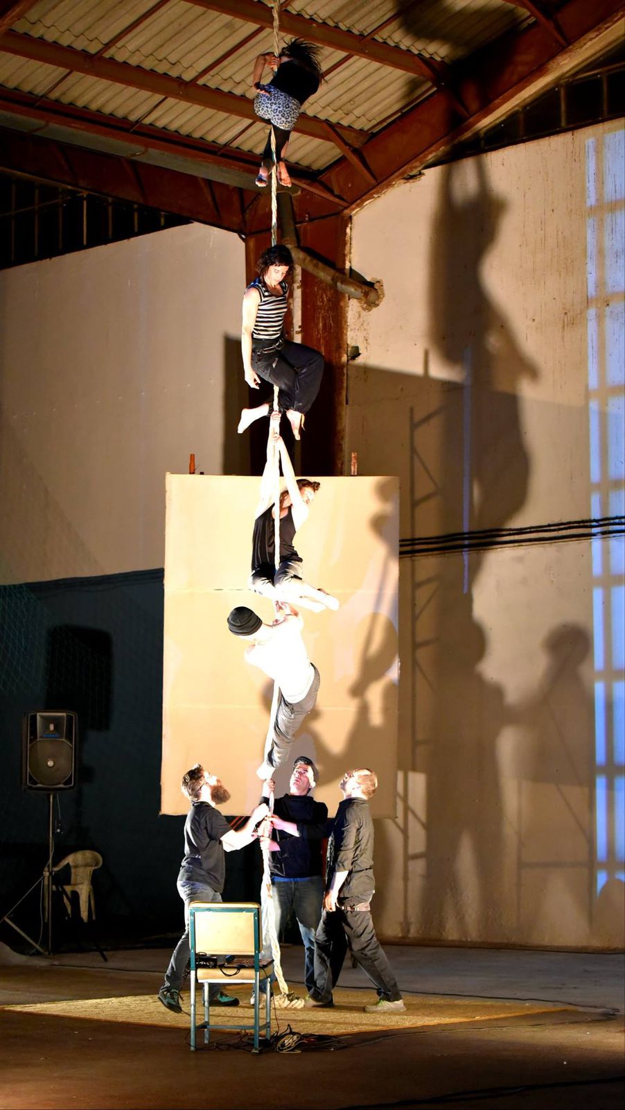 At the end of the journey, we meet each other. This multidisciplinary large-scale performance was born from the encounter of vertical dance, modern circus arts, 3D projection, music and site-specific performance genres. Our vision is to attribute new references to public space and introduce new audience into indoor theatre. ItinaiR is a site-specific creation by nature, so each presentation will be a unique event, inspired by and adapted to the hosting environment. Performers have been selected from the partner countries of Mixdoor project, framework to this production. The show was performed in Torun, Zagreb, Elefsina and Budapest. Organisers of the project are the Hungarian Juggling Associaiton and Pro Progressione joined by Greek, Polish, French and Croatian cultural partners. In each city