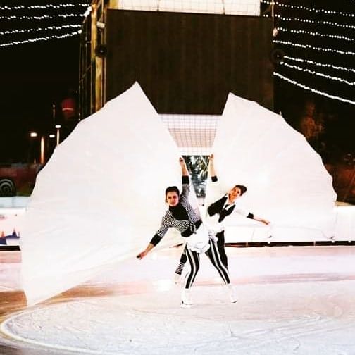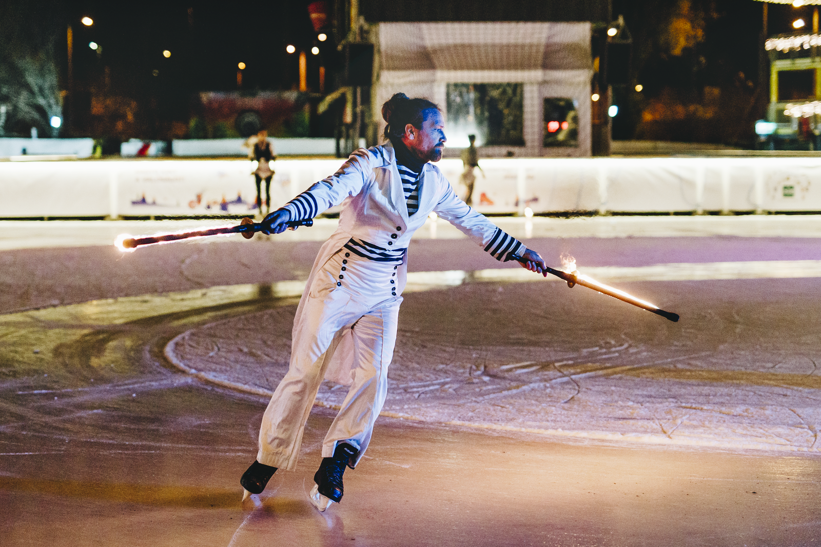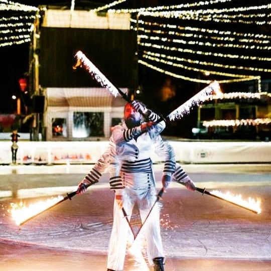 Festive fireshow on iceskates that is ideal for the advent season or on a crystal clear winter evening.