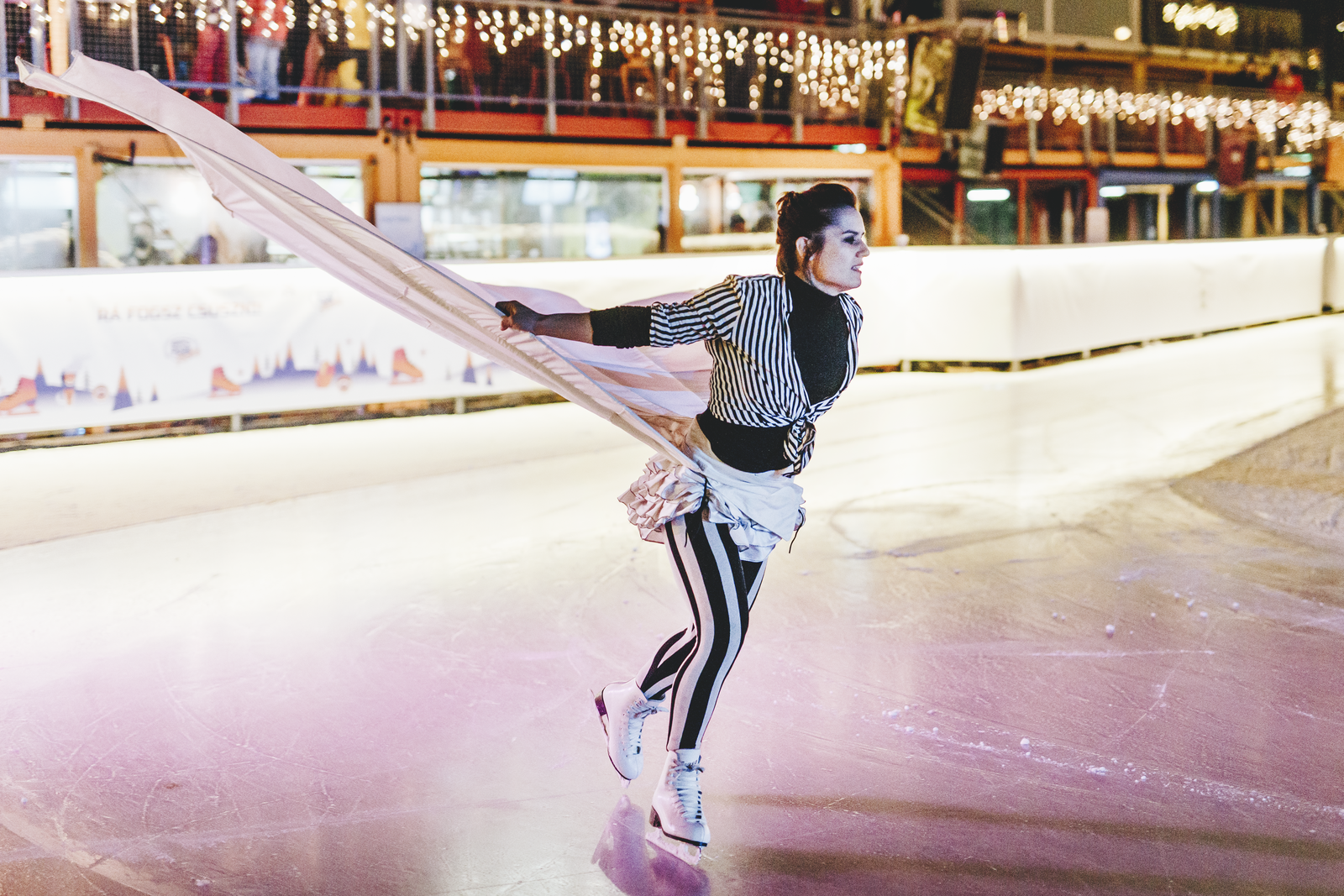 Technical skating combined with firejuggling, firedance choreographies and pyro and fire effects.