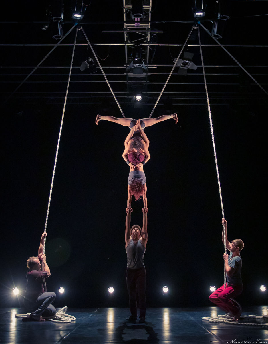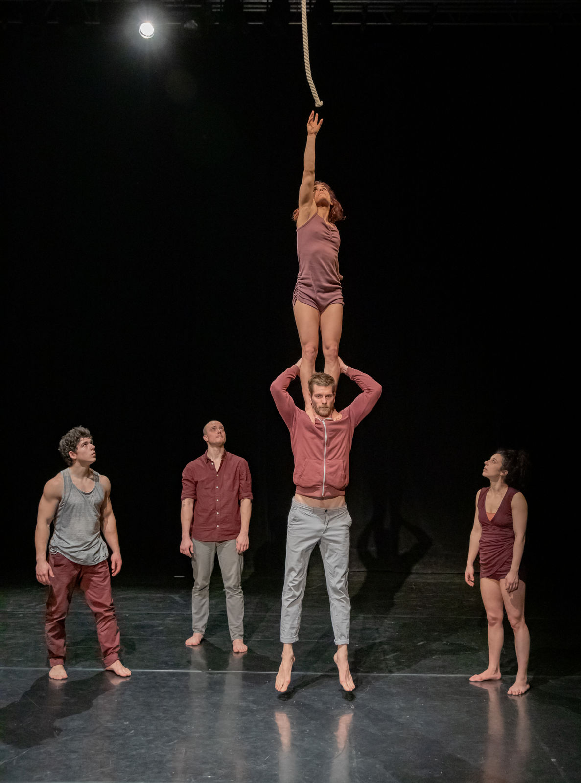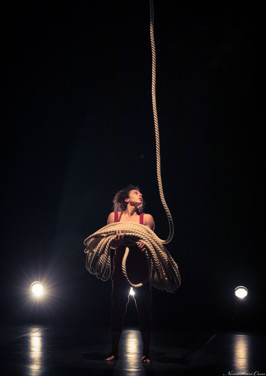 A need to move that is uncommonly hard to describe, similar to an urge to yawn but in your arms or legs. The performance is an exploration of this painful, electrical, creeping, itching, pulling, crawling, buzzing, or numb sensation that ultimately stops you from finding rest. In a search for relief the protagonists turn to all matter of ropes: Jumping and climbing to exhaust the restless body or desperately tying knots in an attempt to quiet the ceaseless movement.